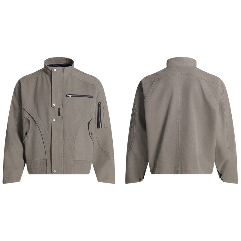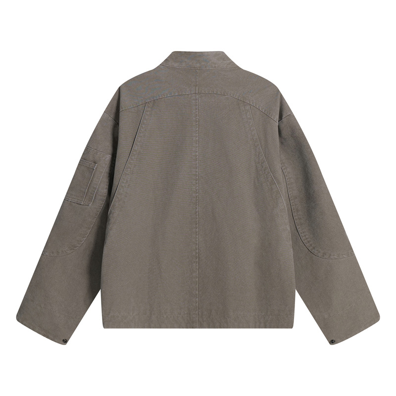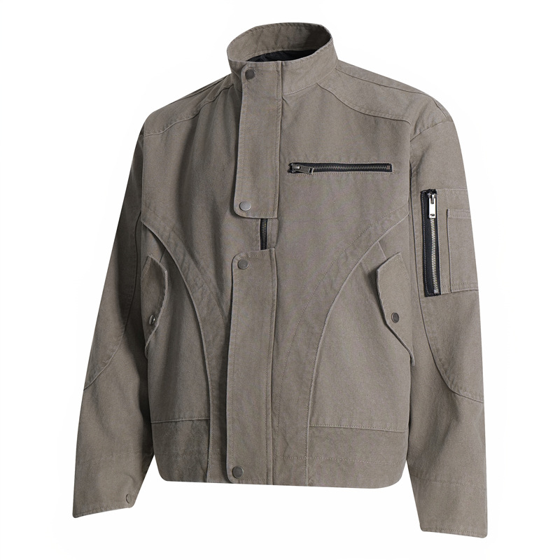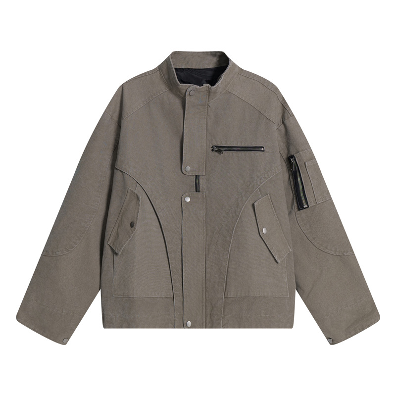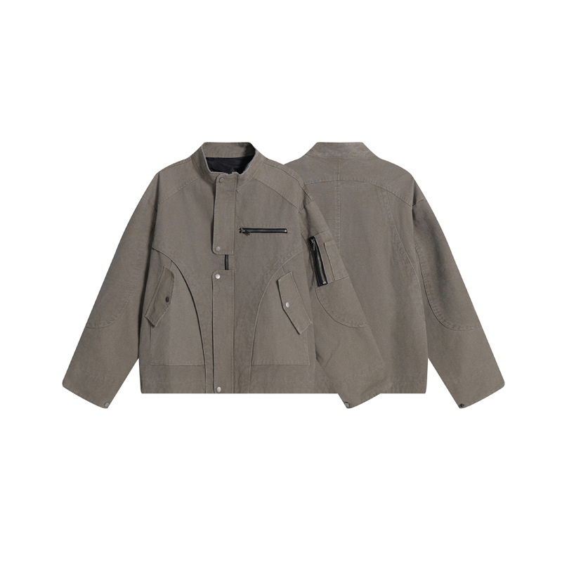 Retro Street Style Multi-Pocket Cargo Jacket for Men, Trendy Design, Loose Casual Stand-Up Collar Coat